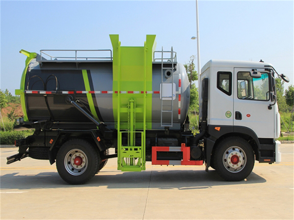 罐体采用优质碳钢板材,罐体内部带固液分离功能(全推推板,不锈钢泔水分离网板),罐内加热功能(用于严寒地带防止罐内餐饮垃圾冻结凝固,采用柴油燃烧机加热,加热速度快效果好,可设置高低温实现自动温控)全液压操作系统,工作人员操作方便,罐体举升自卸,拉杆式挂桶提升机,可以挂120/240升垃圾桶进行作业,后盖液压驱动开启、锁紧,方便人员操作。