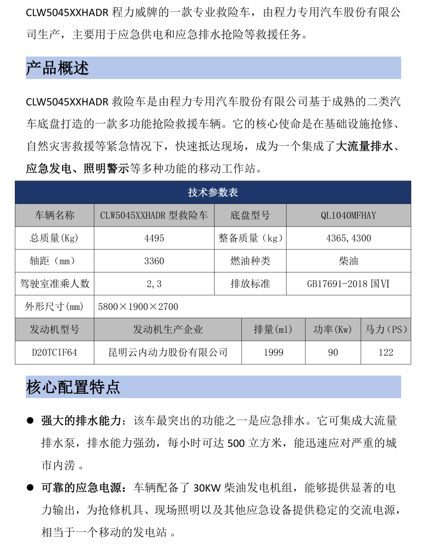 CLW5030TPSADR型大流量排水抢险车
