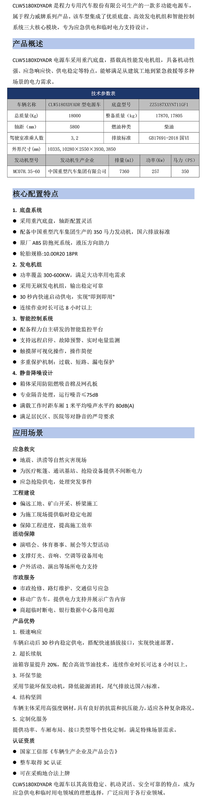 CLW5180XDYADR型电源车