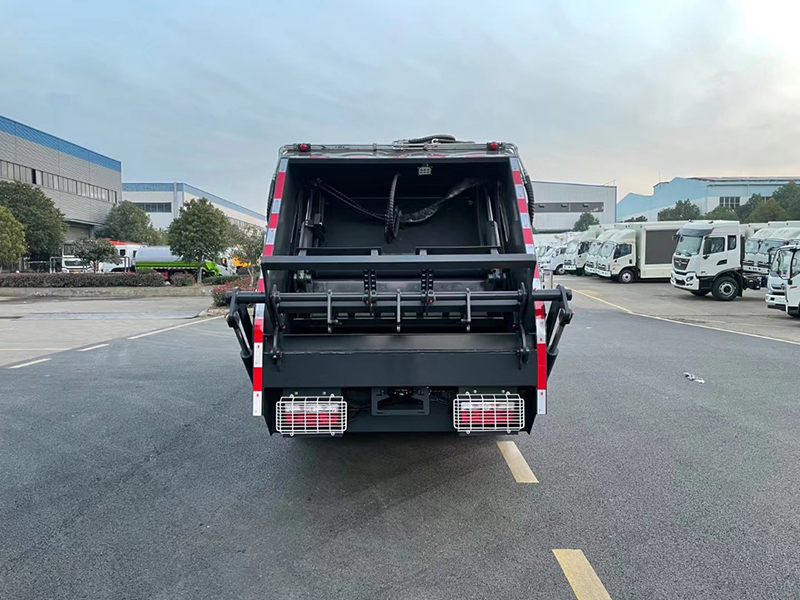 上装配置:上装为弧形箱体结构,采用Q345(局部采用T710)高强度板制作。有效容积6.5立方(240L塑料垃圾桶有效装载100-120桶),采用中梅大通径五联手气一体多路阀,全系标配背压阀(增加双向压缩比),合资铁壳液压齿轮泵,嘉善取力器,加强型挂捅后翻转机构(可选装三角斗、全密封斗、摆臂等翻转机构),外置滑板缸结构,石墨烯尼龙滑块,长沙福力CAN总线控制系统,尾部带有硅胶控制面板,标配无线遥,带光电感应保护装置,标配后污水箱,(中联样6双排污口),可加装侧边无水箱。