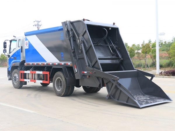 压缩式垃圾车工作装置:不同用户可根据不同的垃圾搜集方式,选装不同的翻桶(斗)机构:翻标准垃圾铁桶ZBT59003-88(300L)、塑料垃圾桶(240L)、塑料垃圾桶(660L)、随车小垃圾斗(800L)、密封遮盖式垃圾斗(1400L)、摆臂垃圾斗(3000L)。