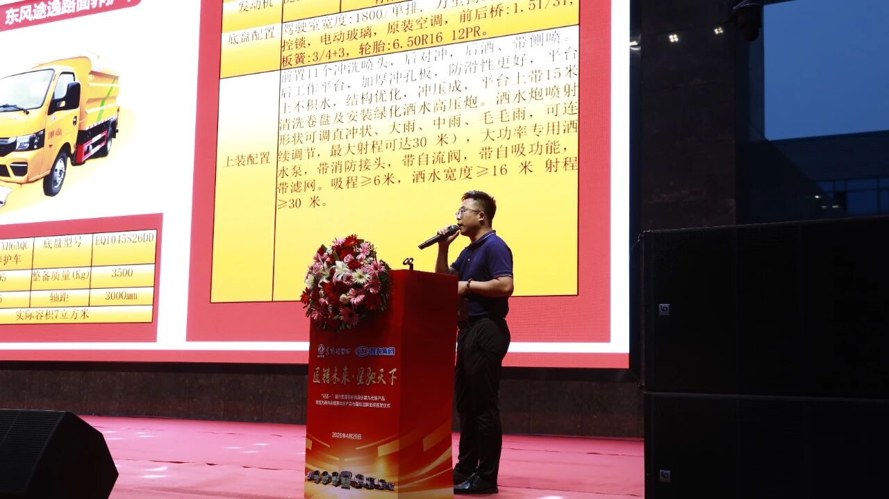 同时,王总突出了东风股份第九代底盘适配专用车型多样性与强大优势,东风D9底盘凭借“强动力、高可靠、易改装”的核心优势,已成为环卫、工程、物流等领域的主流产品。